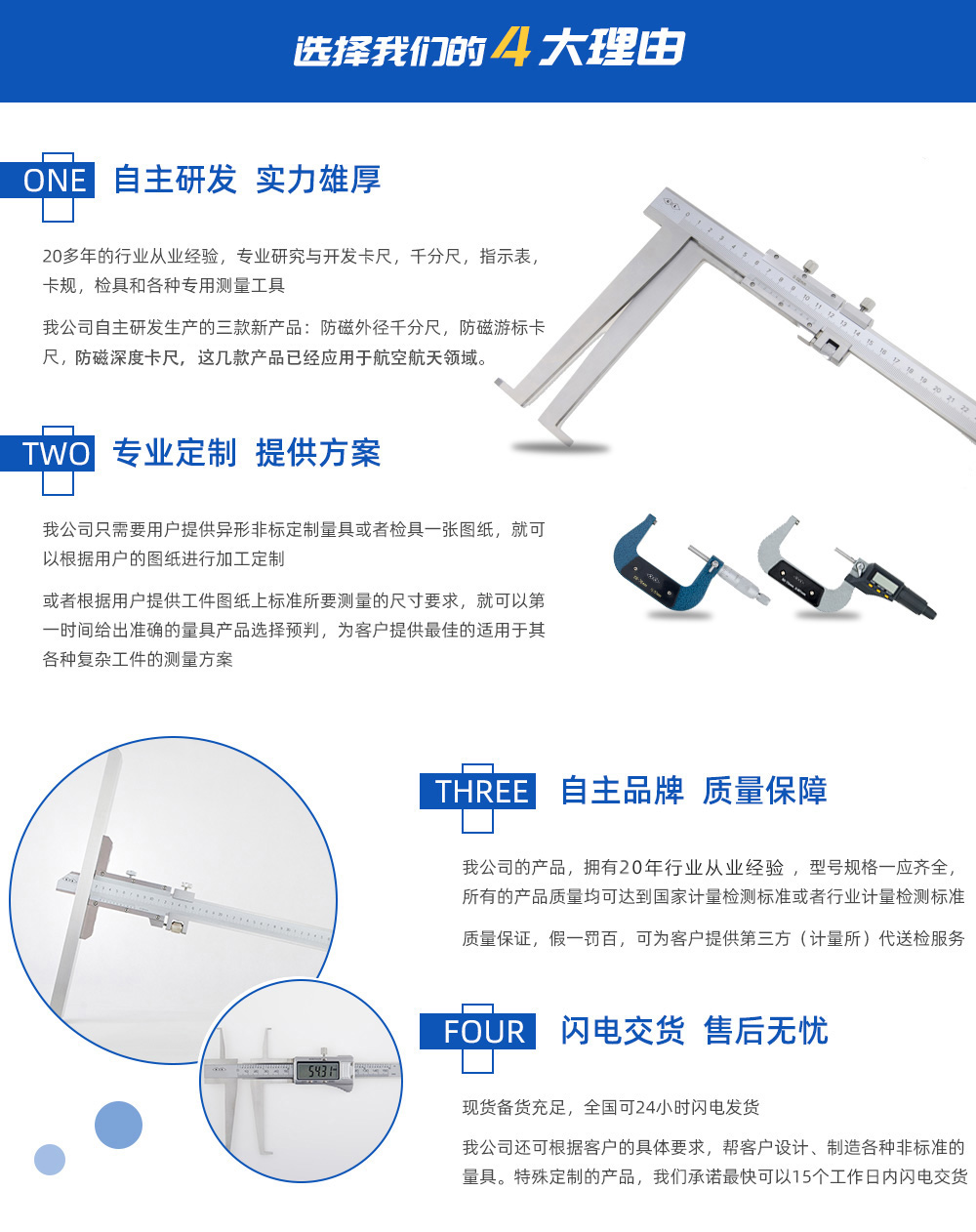 天津桂量量具刃具有限公司,擁有20年的行業(yè)從業(yè)經(jīng)驗,主要生產(chǎn)游標卡尺卡尺,數(shù)顯卡尺,帶表卡尺,各種千分尺,百分表,內(nèi)徑百分表,高度游標卡尺,深度卡尺,卡規(guī),檢具和各種測量工具,是一家集設(shè)計生產(chǎn),銷售為一體的企業(yè)。 我公司開發(fā)生產(chǎn)了三款新產(chǎn)品:防磁外徑千分尺,防磁游標卡尺,防磁深度卡尺,這幾…